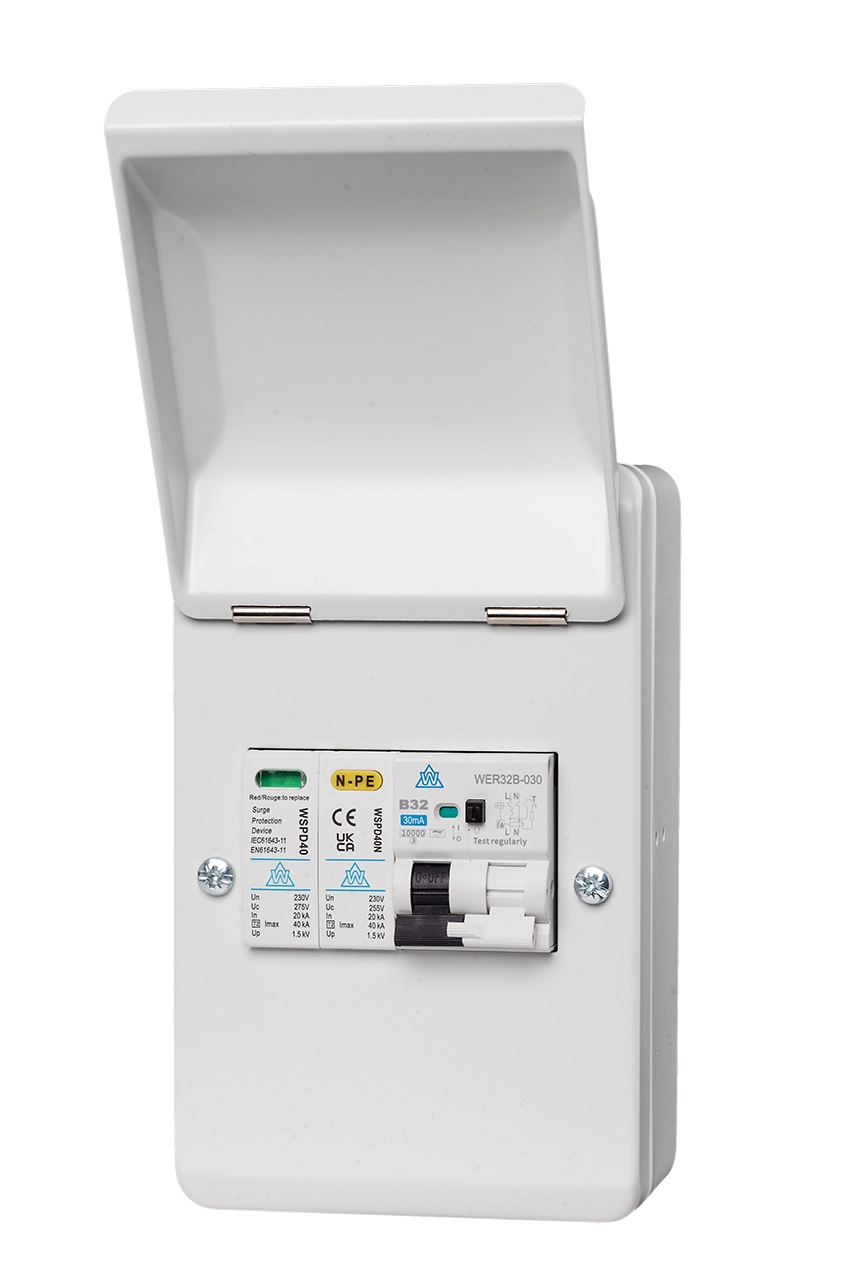 With an integrated RCBO (32A or 40A) and Type 2 Surge Protection Device (SPD), it’s designed for fast, compliant installations in garages, plant rooms, workshops, or utility spaces.
